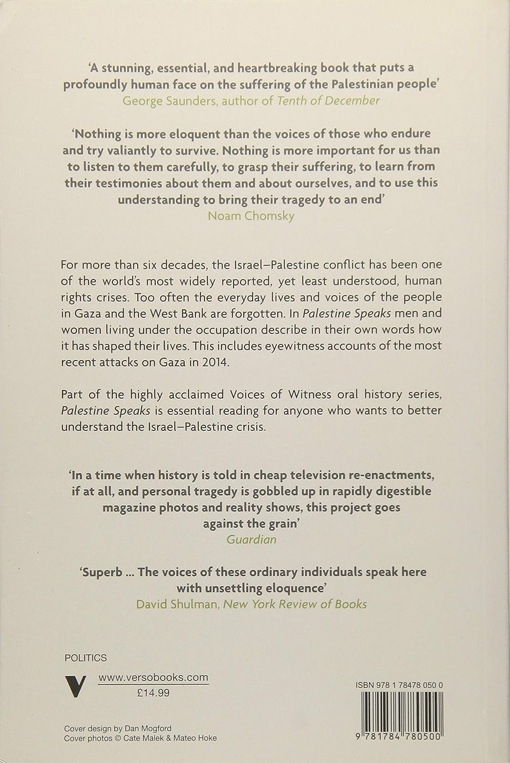 For more than six decades, Israel and Palestine have been the center of one of the world's most widely reported yet least understood human rights crises. In Palestine Speaks men and women from the West Bank and Gaza describe in their own words how their lives have been shaped by the conflict. This includes eyewitness accounts of the most recent attacks on Gaza in 2014. The collection includes Ebtihaj, whose son, born during the first intifada, was killed by Israeli soldiers during a night raid almost twenty years later. Nader, a professional marathon runner from the Gaza Strip who is determined to pursue his dream of competing in international races despite countless challenges, including severe travel restrictions and a lack of resources to help him train.